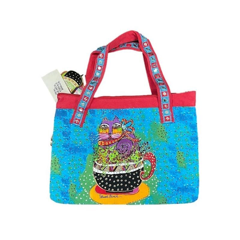 ミディアムトートバッグ LB4352 トート キャンバス ローレルバーチ LAUREL BURCH パープルキャット カラフルにデザインされたネコ トートバッグ | 【10000円以下の輸入雑貨】 サウスウッド