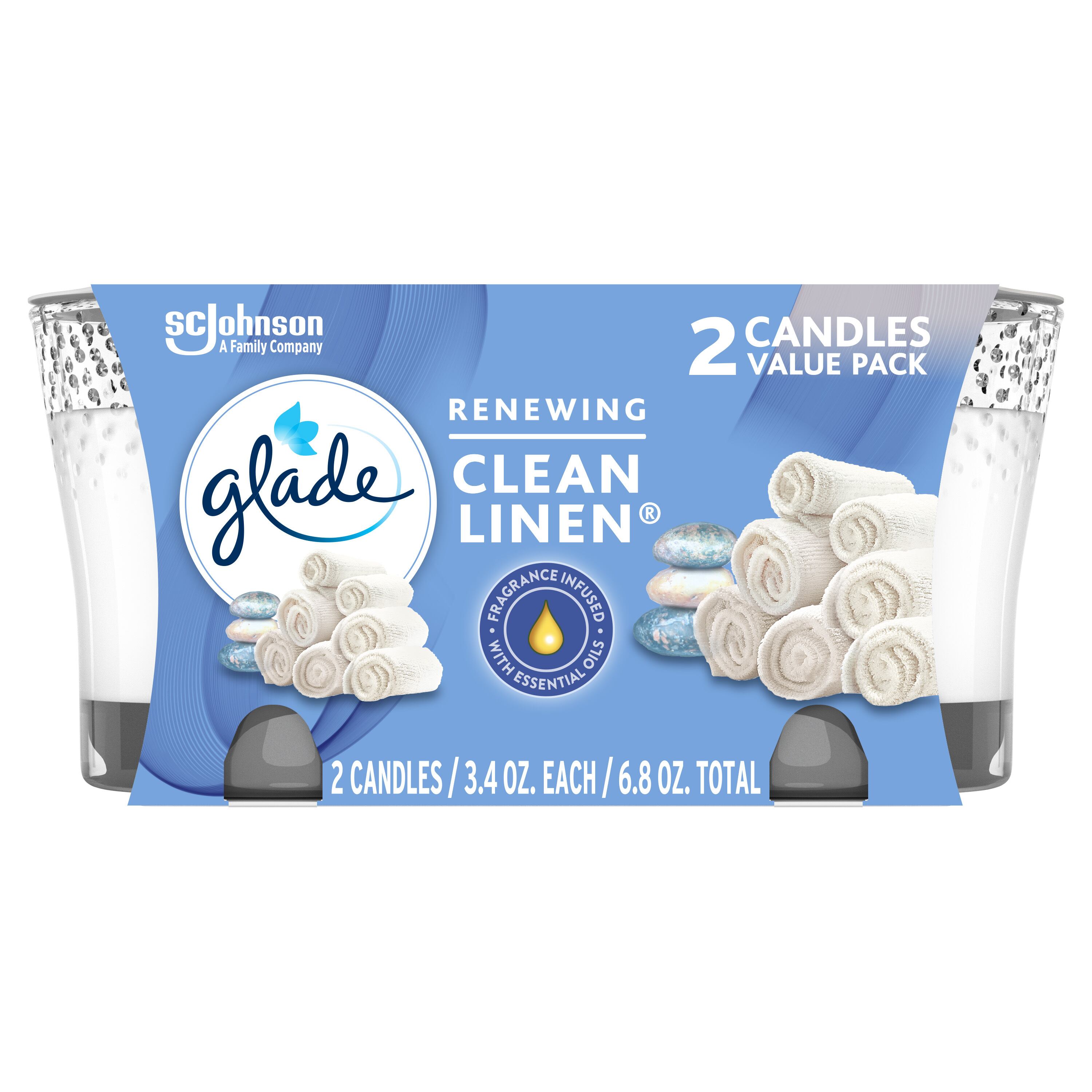 Glade Clean Linen Candle Air Freshener, 3.4 oz, 2 count