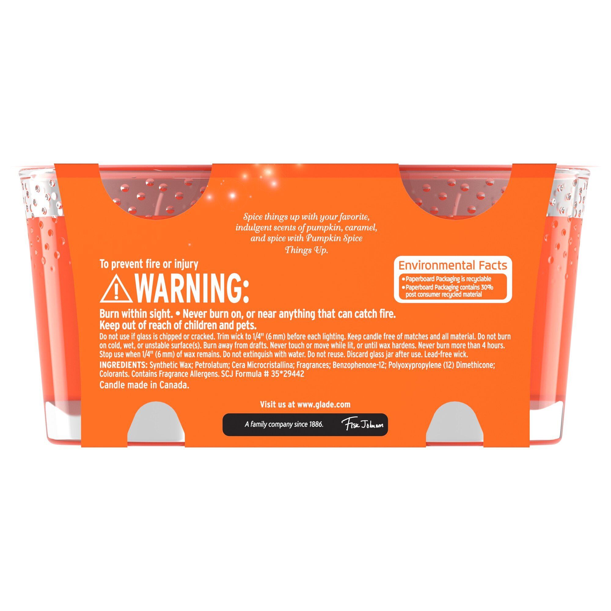 Glade Jar Candle Air Freshener Pumpkin Spice Things Up Wax Infused with Essential Oils