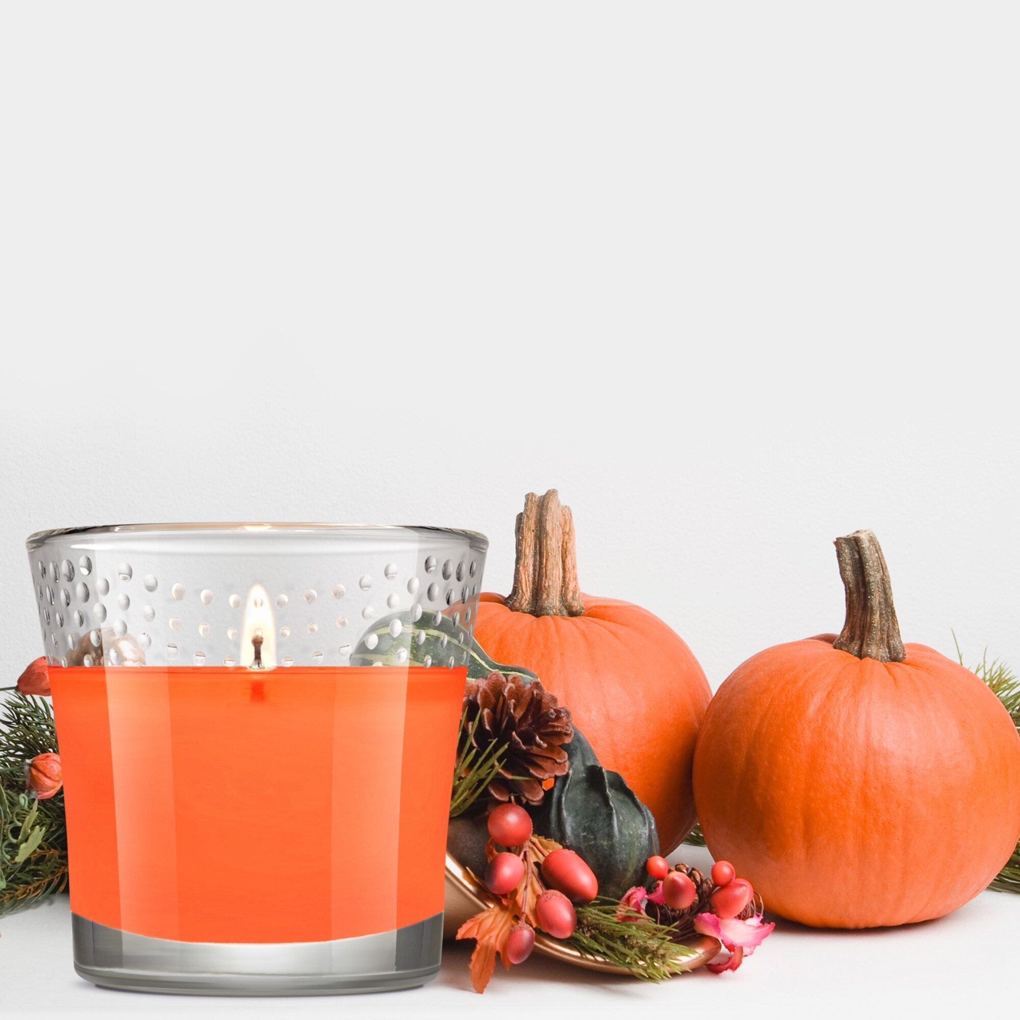 秋の香りが漂うアロマキャンドル。パンプキンスパイスの香りが落ち着きを与える。
