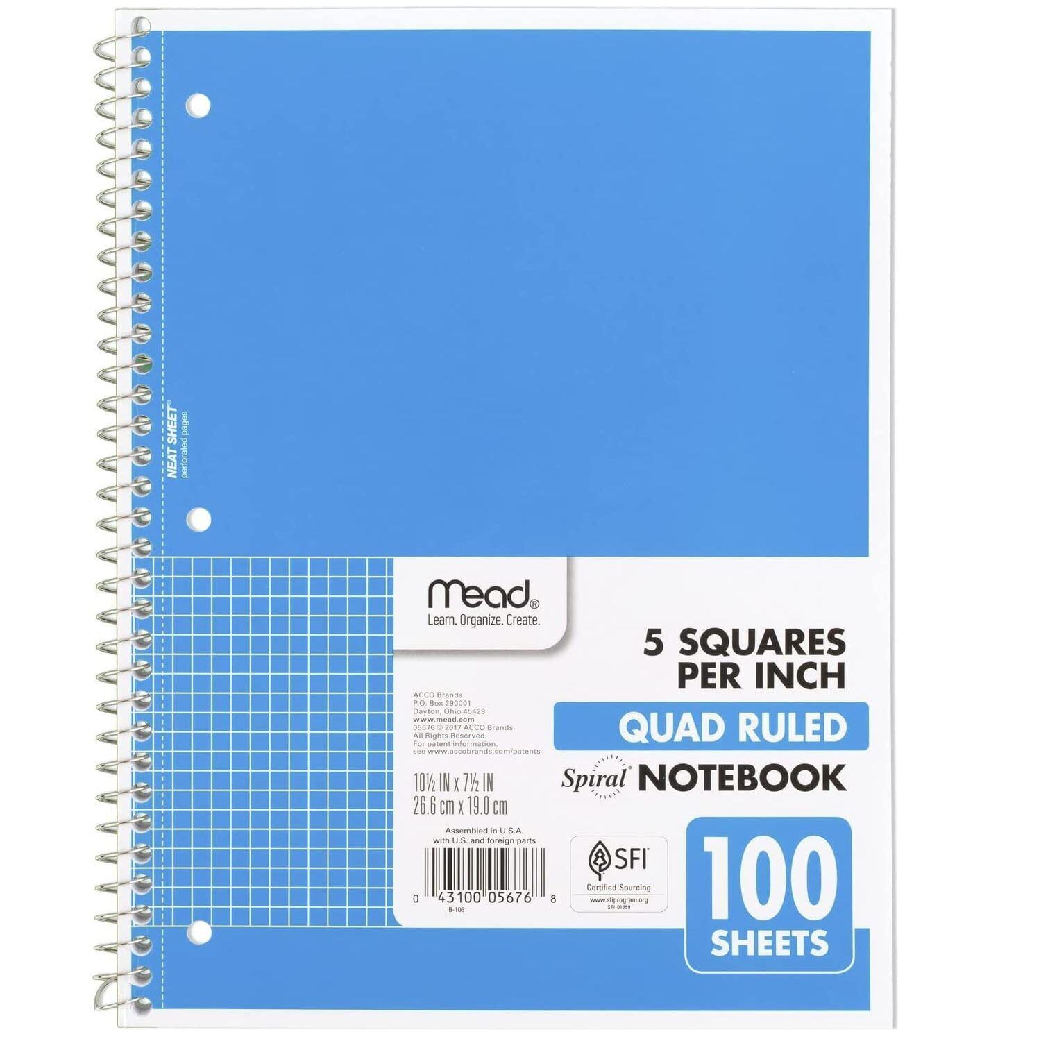 輸入ノート 【ブルー】 多用途 スケッチ デザイン ミード ノート 【グラフ 格子模様】 方眼 スクエアー 輸入文具 Mead Spiral Quad Ruled Notebook